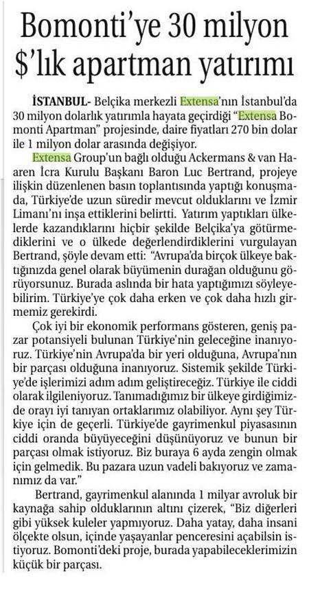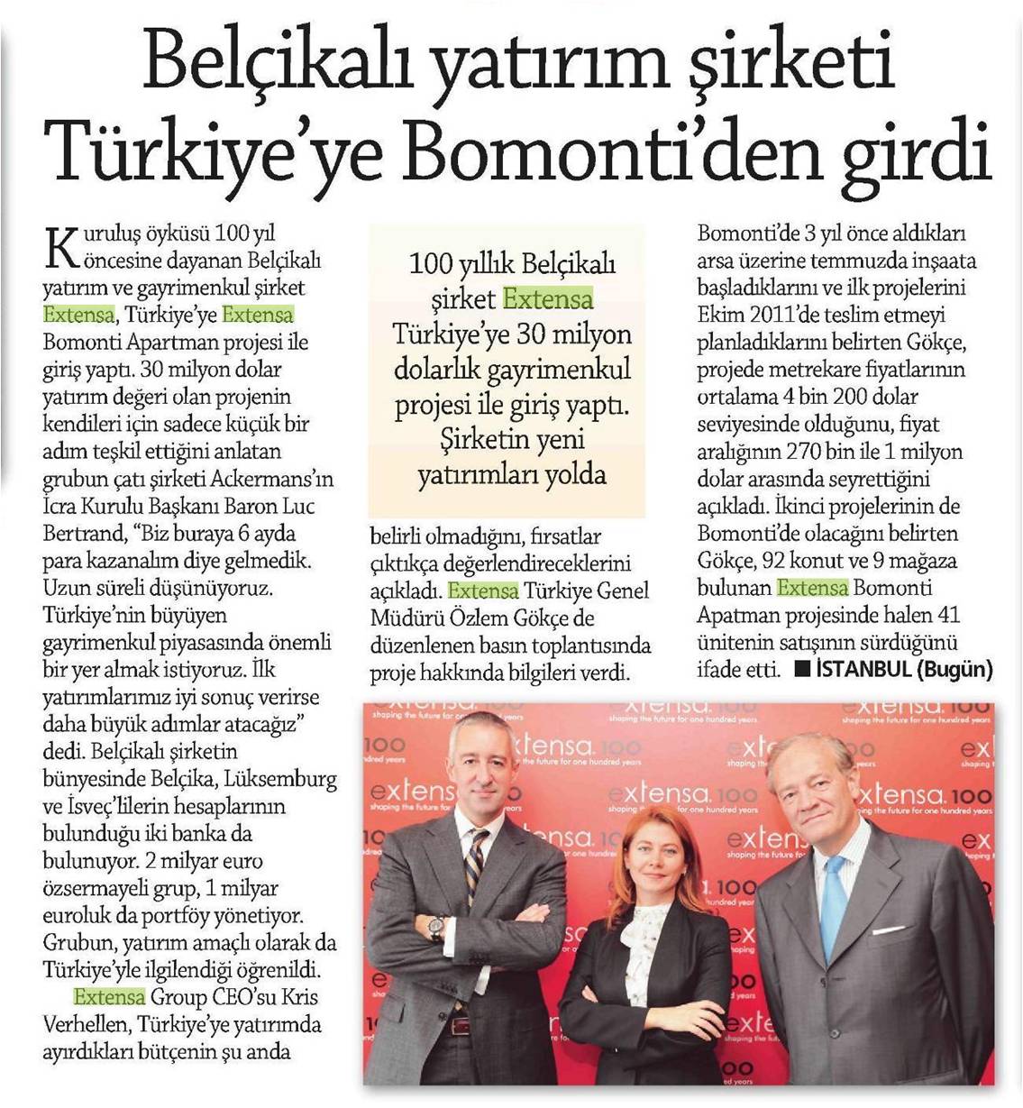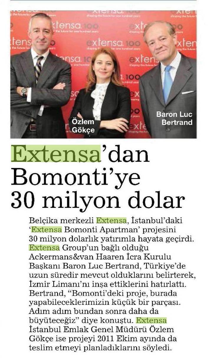Belçikali Extensa Bomonti apartmanla Türk pazarına girdi.